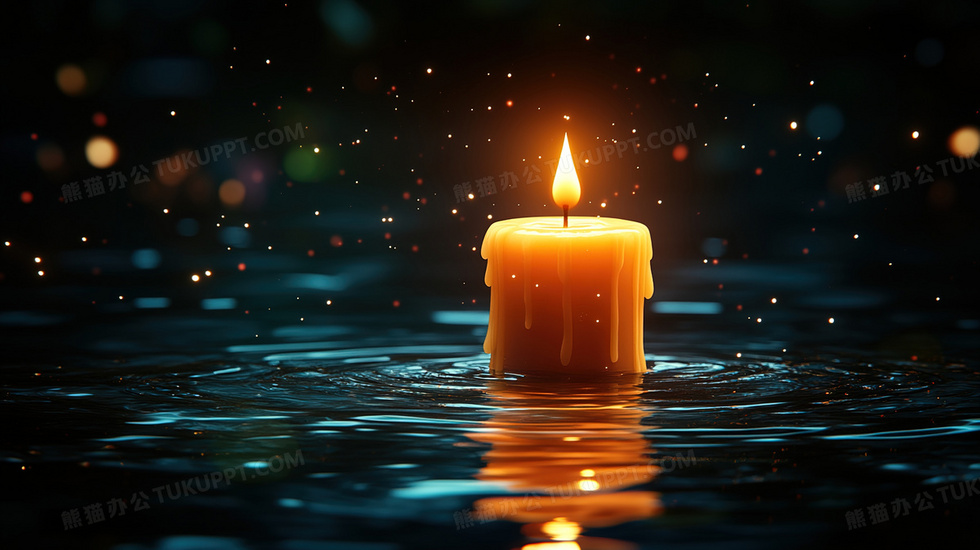 本作品内容为湖面上燃烧着的蜡烛卡通背景, 格式为 jpg, 大小2 MB, 图片尺寸为2912 x 1632, 作品中背景图片无需修改, 源文件无水印,可以直接使用, 欢迎使用熊猫办公。 如认为平台内容涉嫌侵权,可通过邮件:tousu@tukuppt.com提出书面通知,我们将及时处理。