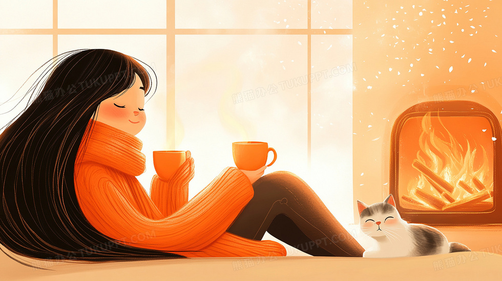 本作品内容为冬季保暖温馨室内暖炉旁取暖的人物插画, 格式为 jpg, 大小5 MB, 图片尺寸为2912 x 1632, 源文件无水印, 欢迎使用熊猫办公。 如认为平台内容涉嫌侵权,可通过邮件:tousu@tukuppt.com提出书面通知,我们将及时处理。