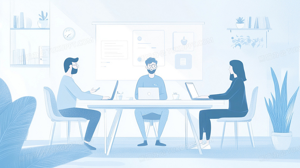 本作品内容为小组讨论职场商务办公工作插画, 格式为 jpg, 大小3 MB, 图片尺寸为2912 x 1632, 源文件无水印, 欢迎使用熊猫办公。 如认为平台内容涉嫌侵权,可通过邮件:tousu@tukuppt.com提出书面通知,我们将及时处理。