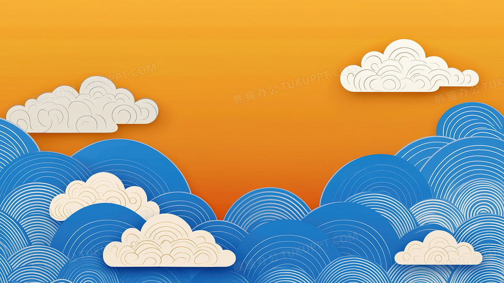 本作品内容为中国风蓝色天空祥云边框创意背景, 格式为 jpg, 大小3 MB, 图片尺寸为2912 x 1632, 作品中背景图片无需修改, 源文件无水印,可以直接使用, 欢迎使用熊猫办公。 如认为平台内容涉嫌侵权,可通过邮件:tousu@tukuppt.com提出书面通知,我们将及时处理。