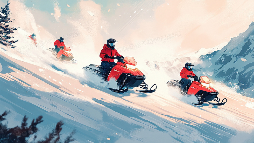 本作品内容为冬季运动多人雪地摩托队伍插画, 格式为 jpg, 大小4 MB, 图片尺寸为2912 x 1632, 源文件无水印, 欢迎使用熊猫办公。 如认为平台内容涉嫌侵权,可通过邮件:tousu@tukuppt.com提出书面通知,我们将及时处理。