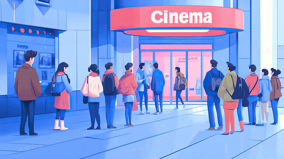 本作品内容为电影院门口的人群插画, 格式为 jpg, 大小3 MB, 图片尺寸为2912 x 1632, 源文件无水印, 欢迎使用熊猫办公。 如认为平台内容涉嫌侵权,可通过邮件:tousu@tukuppt.com提出书面通知,我们将及时处理。