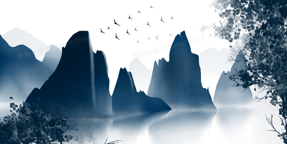本作品内容为中国风装饰山水水墨画背景插画, 格式为 psd, 大小24 MB, 图片尺寸为3508 x 1761, 作品中背景图片无需修改, 源文件无水印,可以直接使用, 欢迎使用熊猫办公。 如认为平台内容涉嫌侵权,可通过邮件:tousu@tukuppt.com提出书面通知,我们将及时处理。