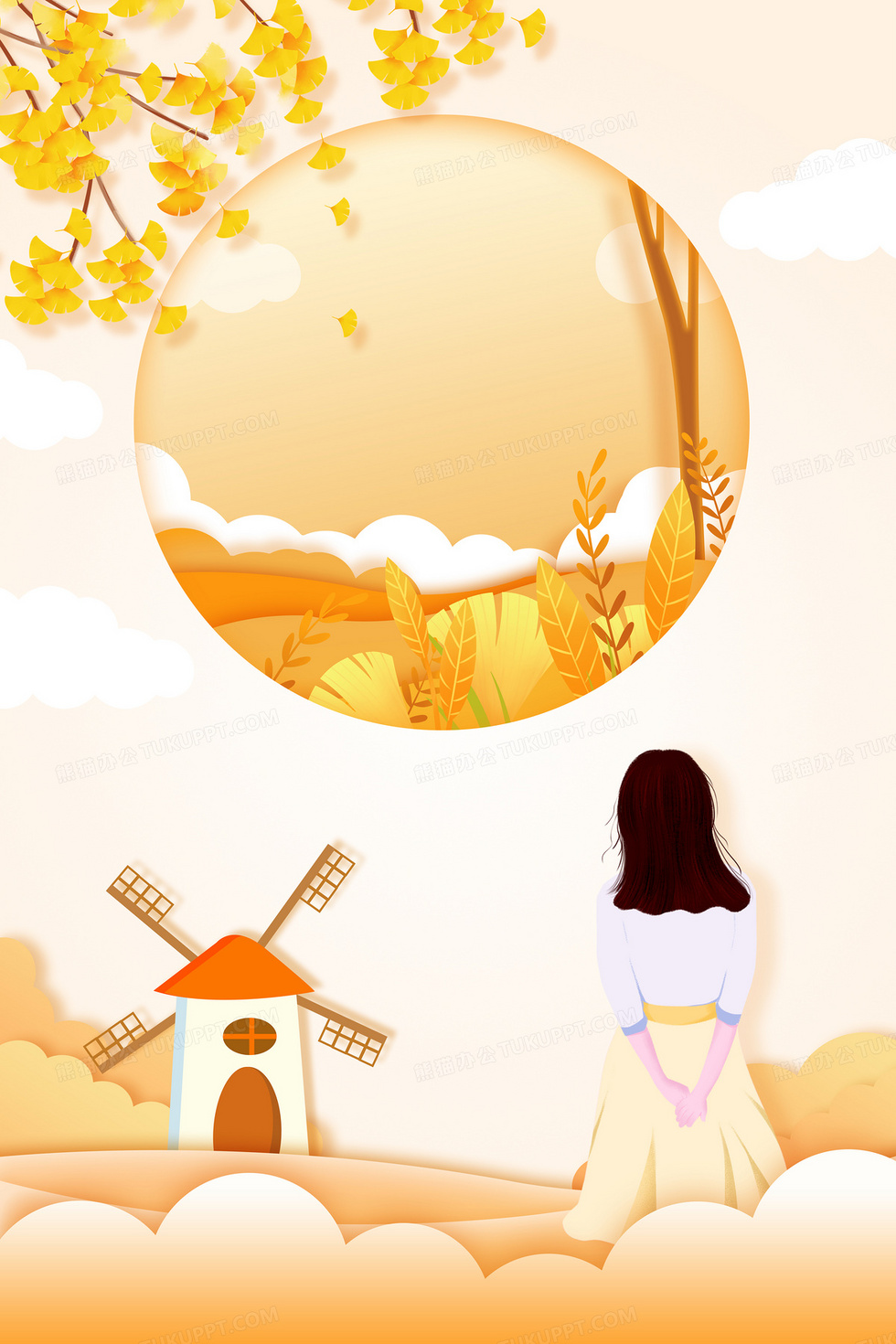 本作品内容为小清新女孩剪纸风金秋时节创意背景, 格式为 psd, 大小38 MB, 图片尺寸为3543 x 5315, 作品中背景图片无需修改, 源文件无水印,可以直接使用, 欢迎使用熊猫办公。 如认为平台内容涉嫌侵权,可通过邮件:tousu@tukuppt.com提出书面通知,我们将及时处理。