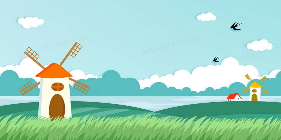 本作品内容为小清新剪纸风田野风车背景, 格式为 psd, 大小7 MB, 图片尺寸为4724 x 2362, 作品中背景图片无需修改, 源文件无水印,可以直接使用, 欢迎使用熊猫办公。 如认为平台内容涉嫌侵权,可通过邮件:tousu@tukuppt.com提出书面通知,我们将及时处理。