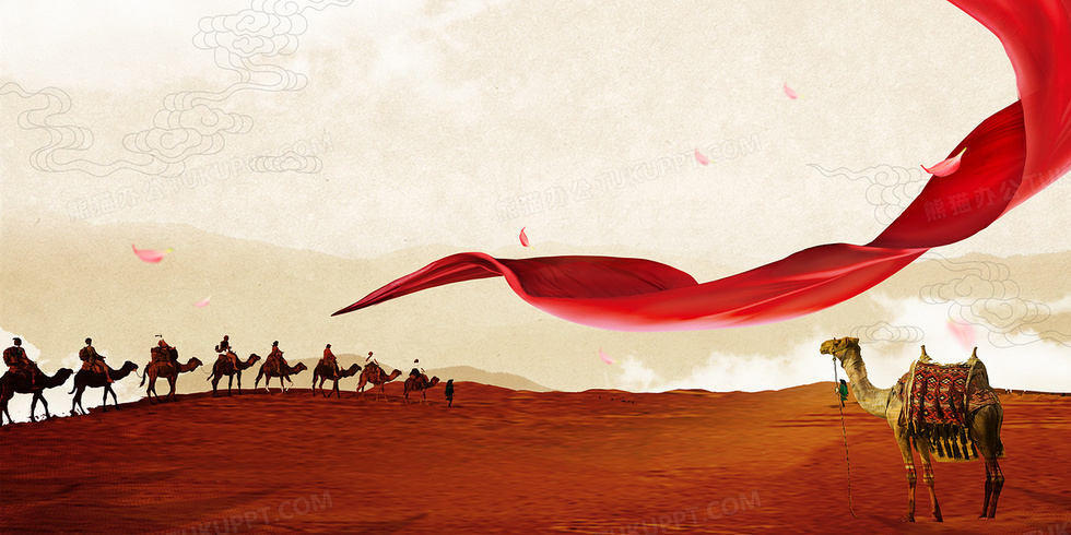 本作品内容为一带一路新丝路驼队通商复古背景, 格式为 psd, 大小108 MB, 图片尺寸为4724 x 2362, 作品中背景图片无需修改, 源文件无水印,可以直接使用, 欢迎使用熊猫办公。 如认为平台内容涉嫌侵权,可通过邮件:tousu@tukuppt.com提出书面通知,我们将及时处理。