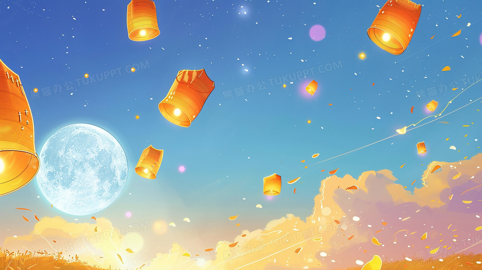 本作品内容为空中飘浮的祈福孔明灯插画, 格式为 jpg, 大小3 MB, 图片尺寸为2912 x 1632, 源文件无水印, 欢迎使用熊猫办公。 如认为平台内容涉嫌侵权,可通过邮件:tousu@tukuppt.com提出书面通知,我们将及时处理。