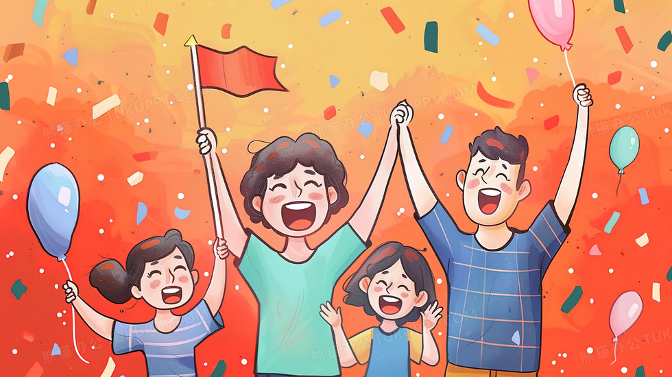 本作品内容为红色背景一家人喜迎国庆气球喜庆装饰插画, 格式为 jpg, 大小3 MB, 图片尺寸为2912 x 1632, 源文件无水印, 欢迎使用熊猫办公。 如认为平台内容涉嫌侵权,可通过邮件:tousu@tukuppt.com提出书面通知,我们将及时处理。