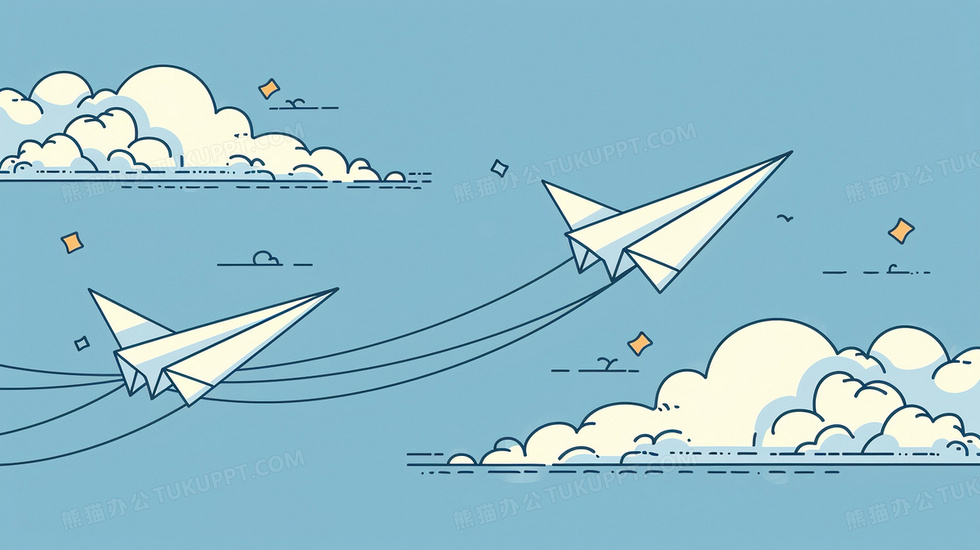 本作品内容为卡通纸飞机白云简约背景, 格式为 jpg, 大小2 MB, 图片尺寸为2912 x 1632, 作品中背景图片无需修改, 源文件无水印,可以直接使用, 欢迎使用熊猫办公。 如认为平台内容涉嫌侵权,可通过邮件:tousu@tukuppt.com提出书面通知,我们将及时处理。