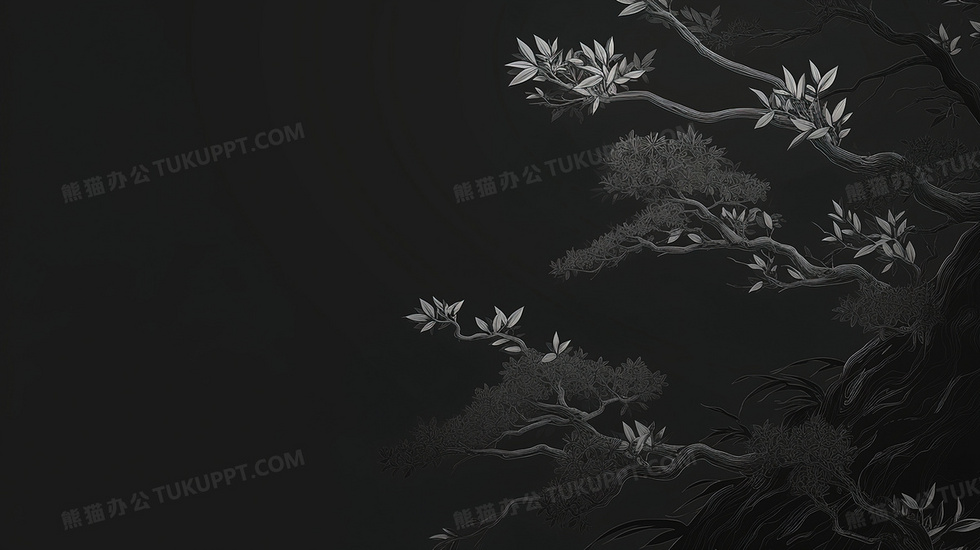 本作品内容为黑色中国风简约山水意境背景, 格式为 jpg, 大小2 MB, 图片尺寸为2912 x 1632, 作品中背景图片无需修改, 源文件无水印,可以直接使用, 欢迎使用熊猫办公。 如认为平台内容涉嫌侵权,可通过邮件:tousu@tukuppt.com提出书面通知,我们将及时处理。