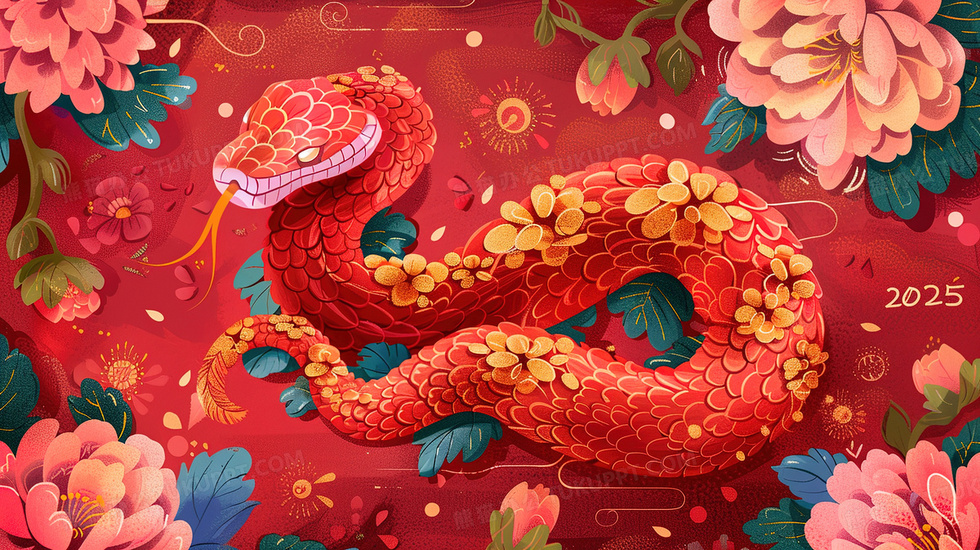 本作品内容为卡通风红色背景喜庆蛇年插画, 格式为 jpg, 大小4 MB, 图片尺寸为2912 x 1632, 源文件无水印, 欢迎使用熊猫办公。 如认为平台内容涉嫌侵权,可通过邮件:tousu@tukuppt.com提出书面通知,我们将及时处理。