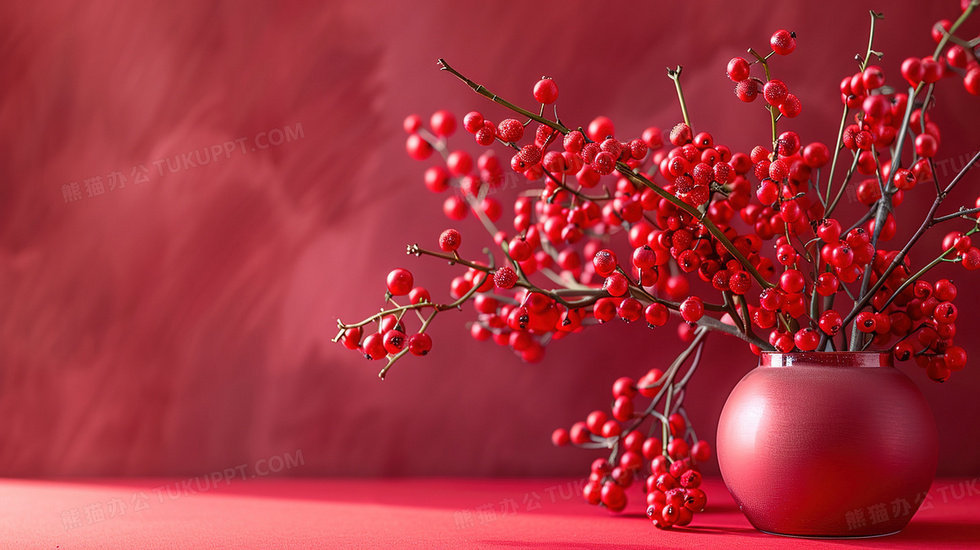 本作品内容为红色喜庆红果装饰背景, 格式为 jpg, 大小2 MB, 图片尺寸为2912 x 1632, 作品中背景图片无需修改, 源文件无水印,可以直接使用, 欢迎使用熊猫办公。 如认为平台内容涉嫌侵权,可通过邮件:tousu@tukuppt.com提出书面通知,我们将及时处理。