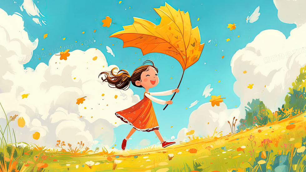 本作品内容为秋季女孩拿着一片大大的树叶飞行插画, 格式为 jpg, 大小3 MB, 图片尺寸为2912 x 1632, 源文件无水印, 欢迎使用熊猫办公。 如认为平台内容涉嫌侵权,可通过邮件:tousu@tukuppt.com提出书面通知,我们将及时处理。