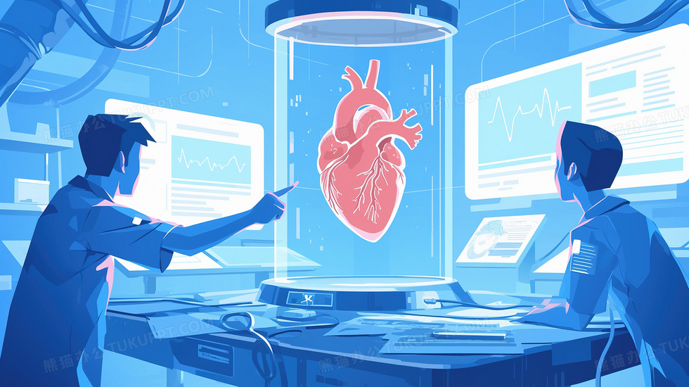 本作品内容为蓝色智慧医疗研究心脏病的医生插画, 格式为 jpg, 大小3 MB, 图片尺寸为2912 x 1632, 源文件无水印, 欢迎使用熊猫办公。 如认为平台内容涉嫌侵权,可通过邮件:tousu@tukuppt.com提出书面通知,我们将及时处理。