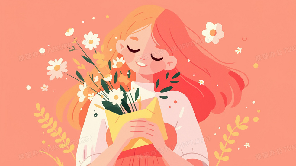 本作品内容为手拿鲜花收到感谢信的女孩插画, 格式为 jpg, 大小2 MB, 图片尺寸为2912 x 1632, 源文件无水印, 欢迎使用熊猫办公。 如认为平台内容涉嫌侵权,可通过邮件:tousu@tukuppt.com提出书面通知,我们将及时处理。