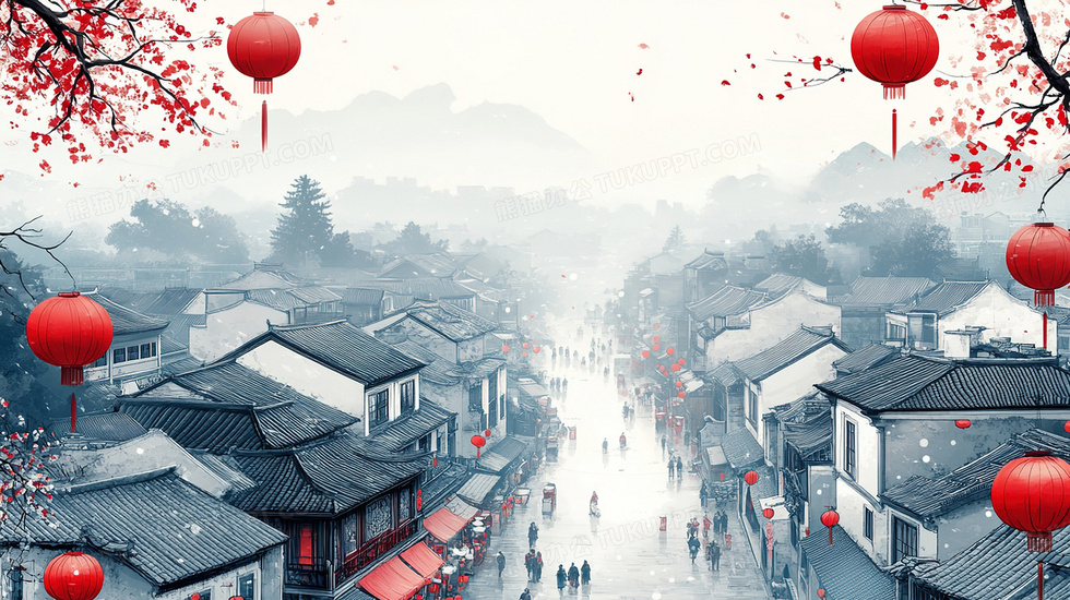 本作品内容为唯美风手绘新年街道的插画, 格式为 jpg, 大小4 MB, 图片尺寸为2912 x 1632, 源文件无水印, 欢迎使用熊猫办公。 如认为平台内容涉嫌侵权,可通过邮件:tousu@tukuppt.com提出书面通知,我们将及时处理。