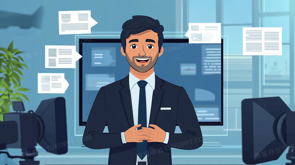 本作品内容为新闻主持记者采访报道插画, 格式为 jpg, 大小2 MB, 图片尺寸为2912 x 1632, 源文件无水印, 欢迎使用熊猫办公。 如认为平台内容涉嫌侵权,可通过邮件:tousu@tukuppt.com提出书面通知,我们将及时处理。