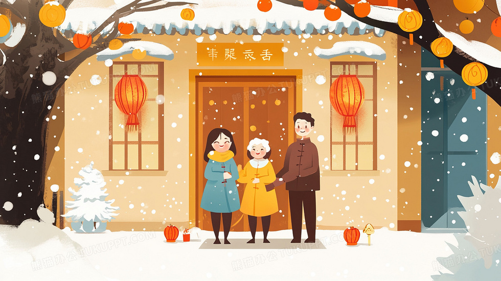 本作品内容为喜庆新年人们走亲戚拜年插画, 格式为 jpg, 大小3 MB, 图片尺寸为2912 x 1632, 源文件无水印, 欢迎使用熊猫办公。 如认为平台内容涉嫌侵权,可通过邮件:tousu@tukuppt.com提出书面通知,我们将及时处理。