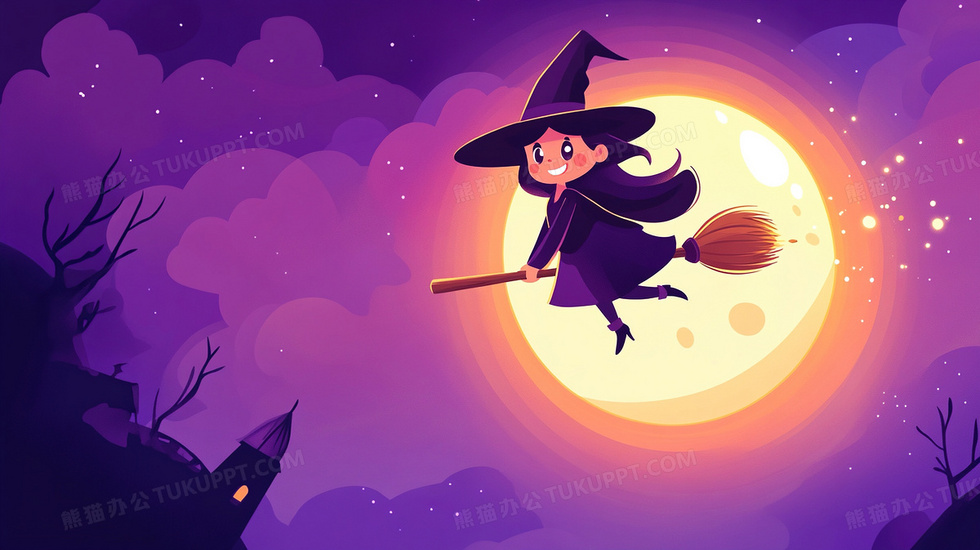 本作品内容为紫色万圣节可爱骑着扫帚的女巫插画, 格式为 jpg, 大小2 MB, 图片尺寸为2912 x 1632, 源文件无水印, 欢迎使用熊猫办公。 如认为平台内容涉嫌侵权,可通过邮件:tousu@tukuppt.com提出书面通知,我们将及时处理。