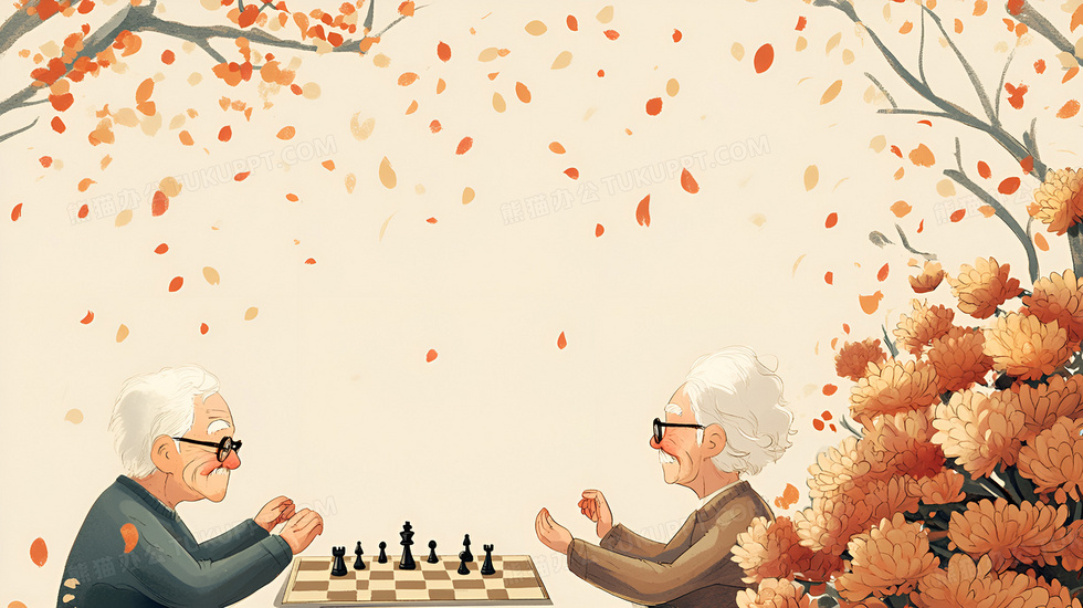 本作品内容为卡通风老人休闲活动下棋重背景, 格式为 jpg, 大小3 MB, 图片尺寸为2912 x 1632, 作品中背景图片无需修改, 源文件无水印,可以直接使用, 欢迎使用熊猫办公。 如认为平台内容涉嫌侵权,可通过邮件:tousu@tukuppt.com提出书面通知,我们将及时处理。