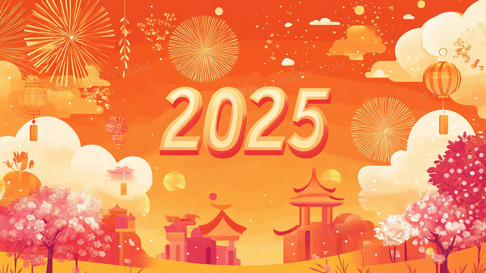 本作品内容为春节喜庆新年2025年插画, 格式为 jpg, 大小3 MB, 图片尺寸为2912 x 1632, 源文件无水印, 欢迎使用熊猫办公。 如认为平台内容涉嫌侵权,可通过邮件:tousu@tukuppt.com提出书面通知,我们将及时处理。