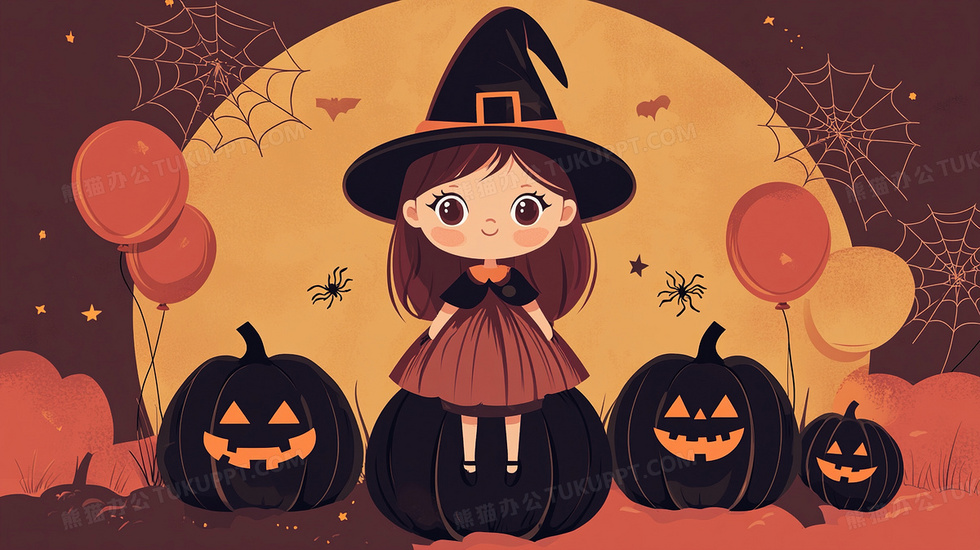 本作品内容为邪恶南瓜卡通万圣节女巫插画, 格式为 jpg, 大小3 MB, 图片尺寸为2912 x 1632, 源文件无水印, 欢迎使用熊猫办公。 如认为平台内容涉嫌侵权,可通过邮件:tousu@tukuppt.com提出书面通知,我们将及时处理。
