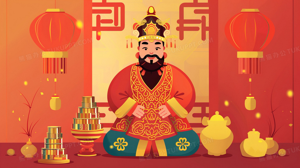 本作品内容为新年春节财神爷恭喜发财插画, 格式为 jpg, 大小2 MB, 图片尺寸为2912 x 1632, 源文件无水印, 欢迎使用熊猫办公。 如认为平台内容涉嫌侵权,可通过邮件:tousu@tukuppt.com提出书面通知,我们将及时处理。