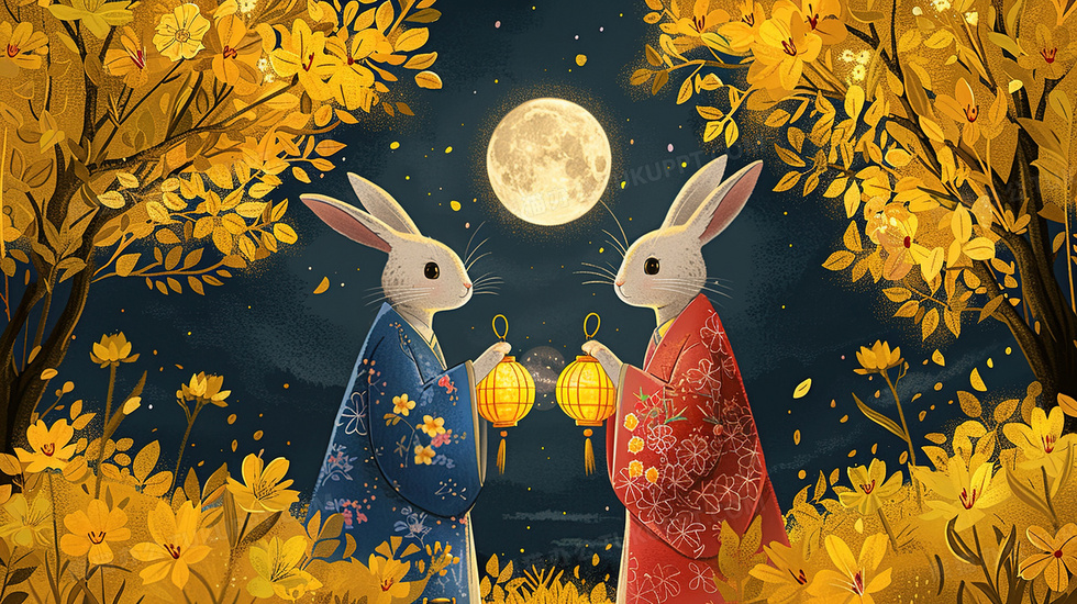 本作品内容为中秋节提着灯笼的两只兔子插画, 格式为 jpg, 大小4 MB, 图片尺寸为2912 x 1632, 源文件无水印, 欢迎使用熊猫办公。 如认为平台内容涉嫌侵权,可通过邮件:tousu@tukuppt.com提出书面通知,我们将及时处理。