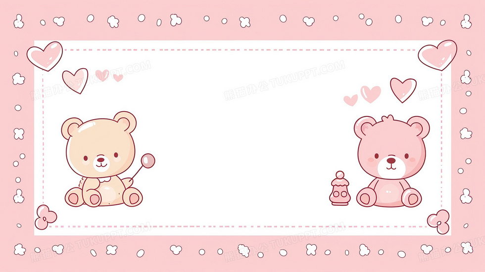 本作品内容为粉色卡通小熊母婴边框背景, 格式为 jpg, 大小2 MB, 图片尺寸为2912 x 1632, 作品中背景图片无需修改, 源文件无水印,可以直接使用, 欢迎使用熊猫办公。 如认为平台内容涉嫌侵权,可通过邮件:tousu@tukuppt.com提出书面通知,我们将及时处理。