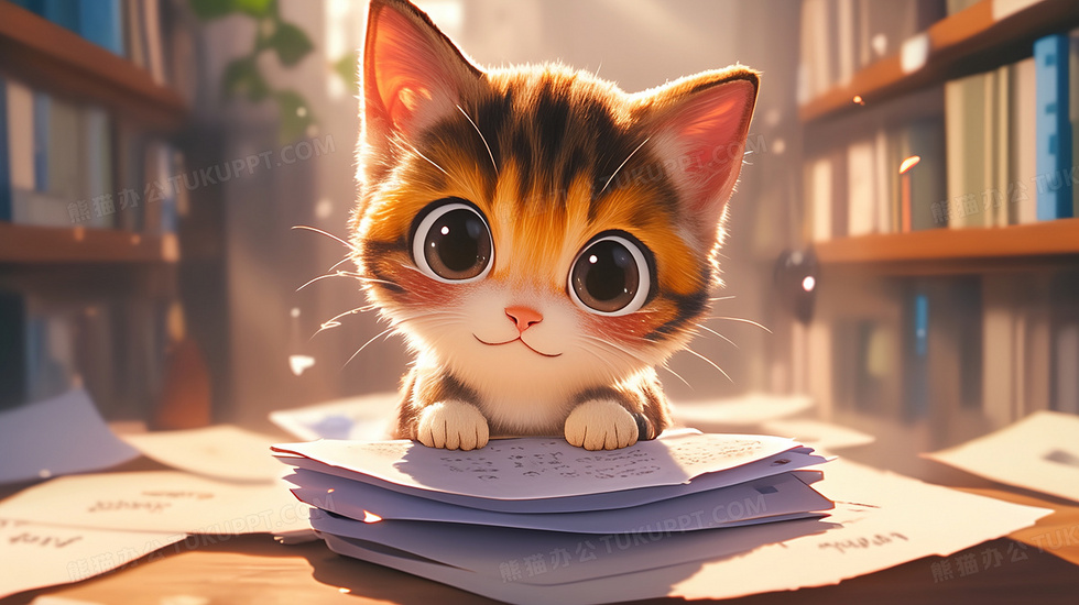 本作品内容为卡通书桌纸张上玩耍的小猫插画, 格式为 jpg, 大小3 MB, 图片尺寸为2912 x 1632, 源文件无水印, 欢迎使用熊猫办公。 如认为平台内容涉嫌侵权,可通过邮件:tousu@tukuppt.com提出书面通知,我们将及时处理。