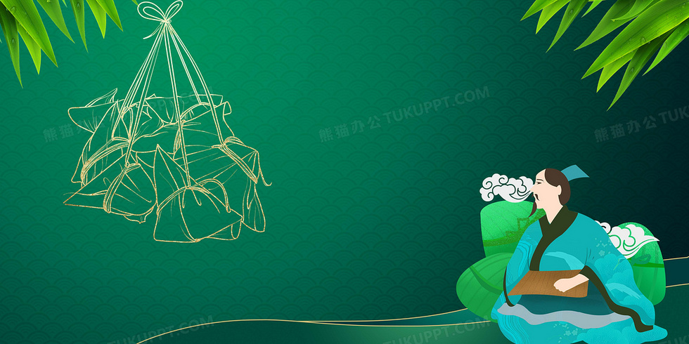 本作品内容为简约大气的端午节屈原粽子背景, 格式为 psd, 大小55 MB, 图片尺寸为4724 x 2362, 作品中背景图片无需修改, 源文件无水印,可以直接使用, 欢迎使用熊猫办公。 如认为平台内容涉嫌侵权,可通过邮件:tousu@tukuppt.com提出书面通知,我们将及时处理。