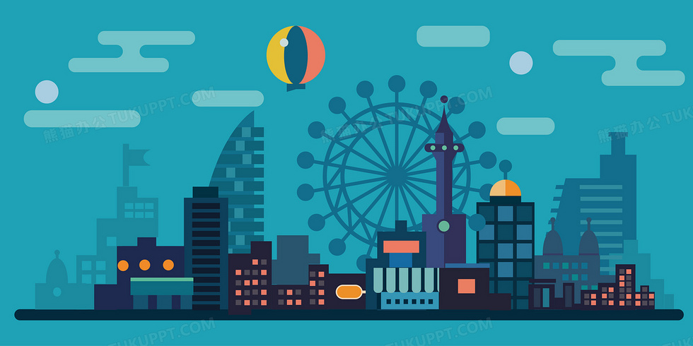 本作品内容为卡通摩天轮高楼城市矢量背景, 格式为 jpg, 图片尺寸为4275 x 2138, 作品中背景图片无需修改, 源文件无水印,可以直接使用, 欢迎使用熊猫办公。 如认为平台内容涉嫌侵权,可通过邮件:tousu@tukuppt.com提出书面通知,我们将及时处理。