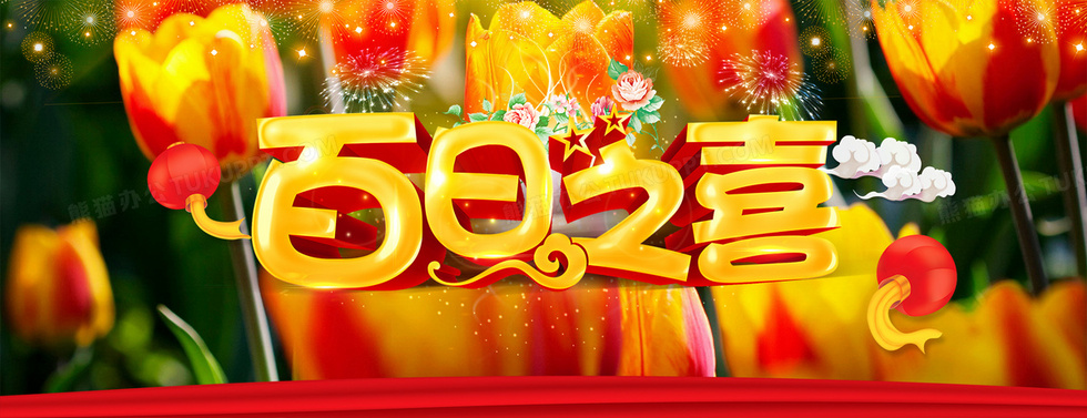 本作品内容为百日之喜, 格式为 psd, 图片尺寸为1920 x 739, 作品中背景图片无需修改, 源文件无水印,可以直接使用, 欢迎使用熊猫办公。 如认为平台内容涉嫌侵权,可通过邮件:tousu@tukuppt.com提出书面通知,我们将及时处理。