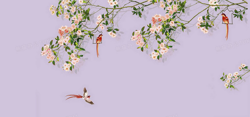 本作品内容为唯美浪漫手绘花鸟家居背景墙装饰画, 格式为 jpg, 图片尺寸为1920 x 900, 作品中背景图片无需修改, 源文件无水印,可以直接使用, 欢迎使用熊猫办公。 如认为平台内容涉嫌侵权,可通过邮件:tousu@tukuppt.com提出书面通知,我们将及时处理。