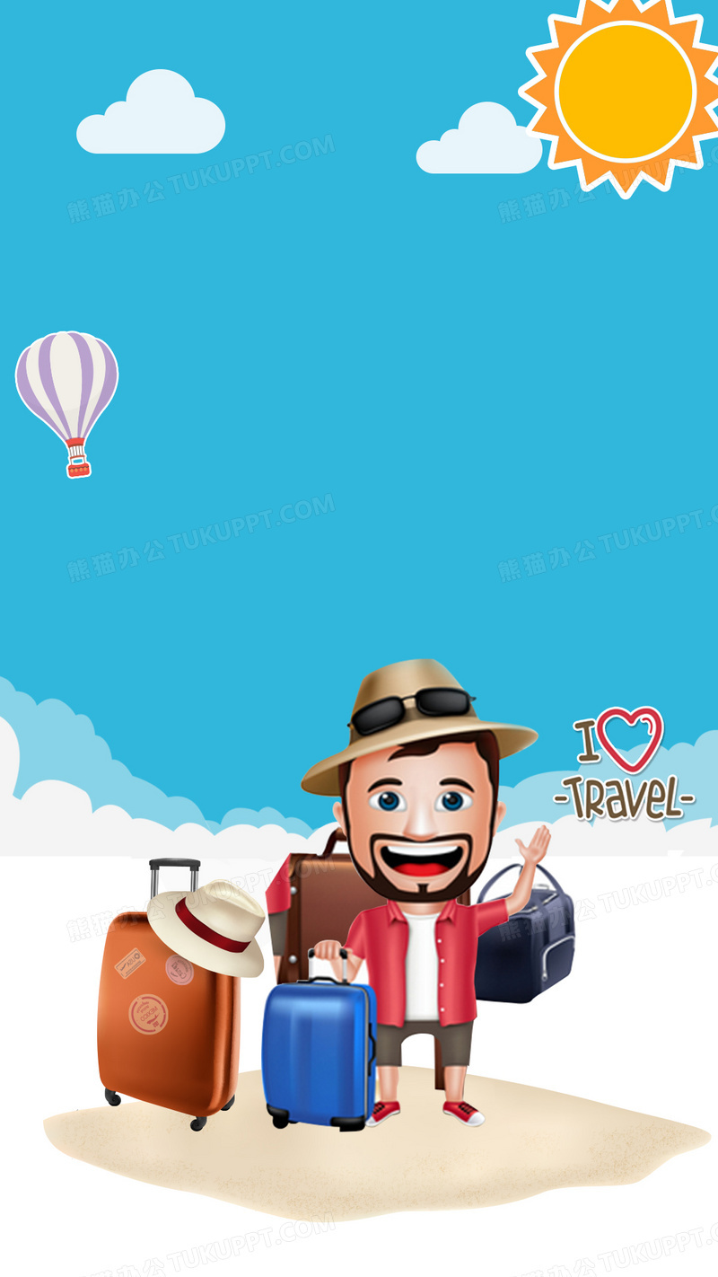 本作品内容为蓝色卡通旅游主题, 格式为 psd, 图片尺寸为1080 x 1920, 作品中背景图片无需修改, 源文件无水印,可以直接使用, 欢迎使用熊猫办公。 如认为平台内容涉嫌侵权,可通过邮件:tousu@tukuppt.com提出书面通知,我们将及时处理。