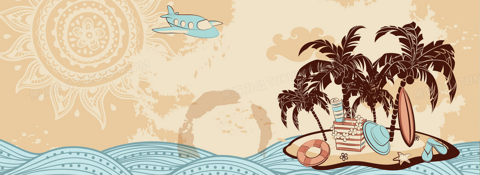 本作品内容为卡通手绘海岛旅游背景, 格式为 ai, 图片尺寸为1920 x 700, 作品中背景图片无需修改, 源文件无水印,可以直接使用, 欢迎使用熊猫办公。 如认为平台内容涉嫌侵权,可通过邮件:tousu@tukuppt.com提出书面通知,我们将及时处理。