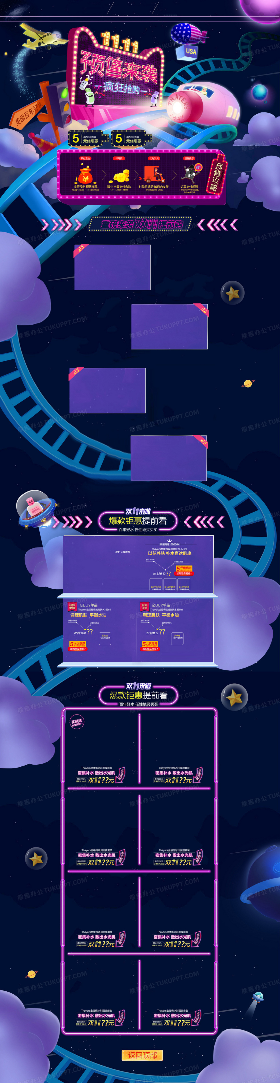 本作品内容为双十一首页背景模板, 格式为 psd, 图片尺寸为1920 x 7406, 作品中背景图片无需修改, 源文件无水印,可以直接使用, 欢迎使用熊猫办公。 如认为平台内容涉嫌侵权,可通过邮件:tousu@tukuppt.com提出书面通知,我们将及时处理。