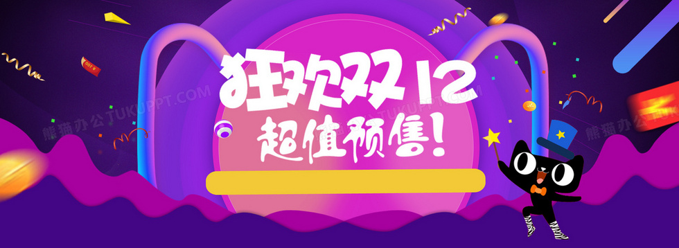 本作品内容为双12预售海报, 格式为 psd, 图片尺寸为1920 x 700, 作品中背景图片无需修改, 源文件无水印,可以直接使用, 欢迎使用熊猫办公。 如认为平台内容涉嫌侵权,可通过邮件:tousu@tukuppt.com提出书面通知,我们将及时处理。