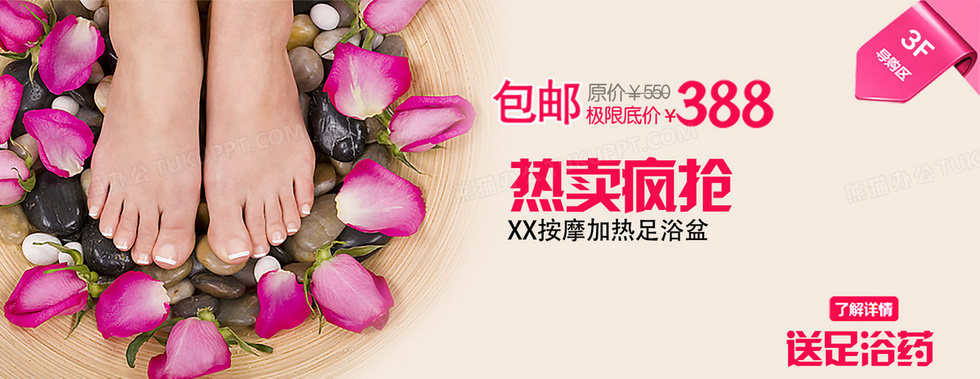 本作品内容为花瓣足浴背景, 格式为 psd, 图片尺寸为1920 x 742, 作品中背景图片无需修改, 源文件无水印,可以直接使用, 欢迎使用熊猫办公。 如认为平台内容涉嫌侵权,可通过邮件:tousu@tukuppt.com提出书面通知,我们将及时处理。