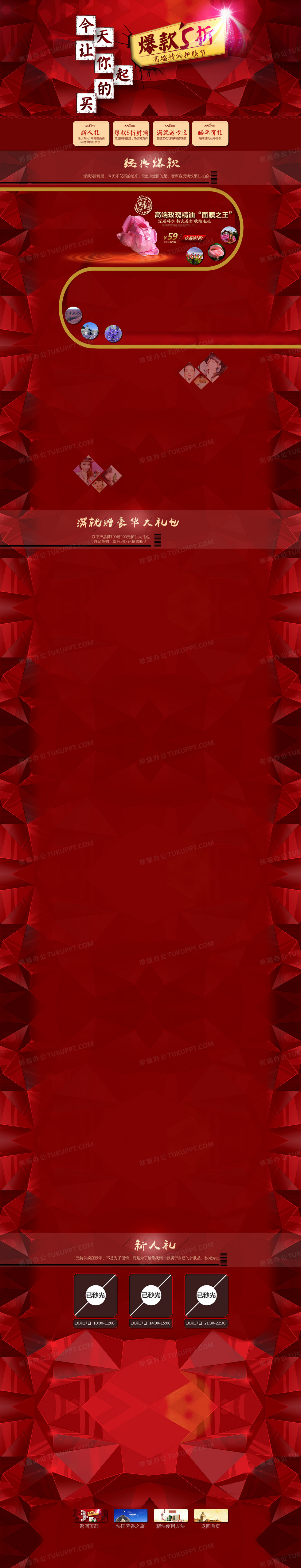 本作品内容为淘宝年中大促首页, 格式为 psd, 图片尺寸为1920 x 10000, 作品中背景图片无需修改, 源文件无水印,可以直接使用, 欢迎使用熊猫办公。 如认为平台内容涉嫌侵权,可通过邮件:tousu@tukuppt.com提出书面通知,我们将及时处理。