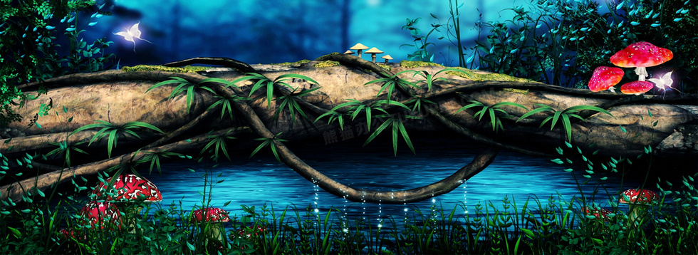 本作品内容为梦幻丛林蘑菇树藤背景, 格式为 jpg, 图片尺寸为1920 x 700, 作品中背景图片无需修改, 源文件无水印,可以直接使用, 欢迎使用熊猫办公。 如认为平台内容涉嫌侵权,可通过邮件:tousu@tukuppt.com提出书面通知,我们将及时处理。