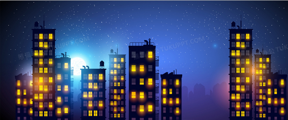 本作品内容为城市午夜背景, 格式为 ai, 图片尺寸为1920 x 800, 作品中背景图片无需修改, 源文件无水印,可以直接使用, 欢迎使用熊猫办公。 如认为平台内容涉嫌侵权,可通过邮件:tousu@tukuppt.com提出书面通知,我们将及时处理。