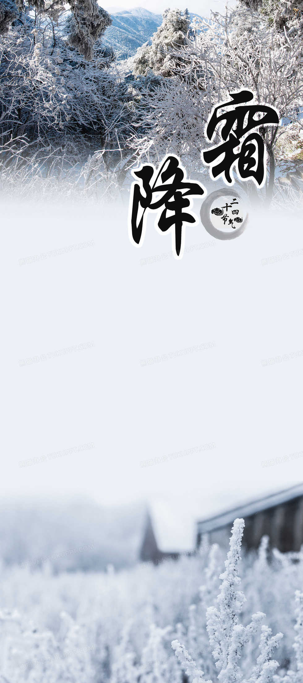 本作品内容为二十四节气霜降背景图, 格式为 psd, 图片尺寸为3000 x 6750, 作品中背景图片无需修改, 源文件无水印,可以直接使用, 欢迎使用熊猫办公。 如认为平台内容涉嫌侵权,可通过邮件:tousu@tukuppt.com提出书面通知,我们将及时处理。