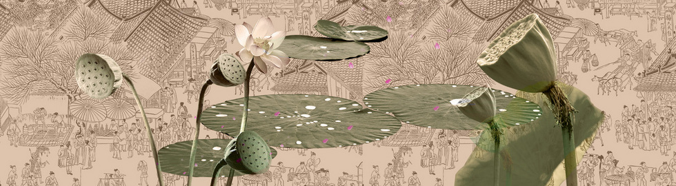 本作品内容为莲蓬莲花文艺国画名作清明上河图背景, 格式为 jpg, 图片尺寸为1920 x 530, 作品中背景图片无需修改, 源文件无水印,可以直接使用, 欢迎使用熊猫办公。 如认为平台内容涉嫌侵权,可通过邮件:tousu@tukuppt.com提出书面通知,我们将及时处理。