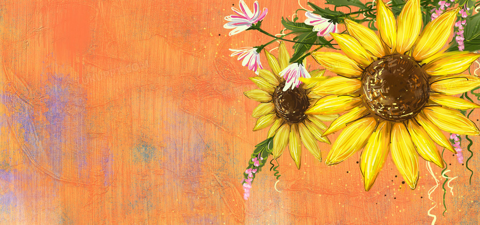 本作品内容为手绘向日葵背景, 格式为 psd, 图片尺寸为1920 x 900, 作品中背景图片无需修改, 源文件无水印,可以直接使用, 欢迎使用熊猫办公。 如认为平台内容涉嫌侵权,可通过邮件:tousu@tukuppt.com提出书面通知,我们将及时处理。