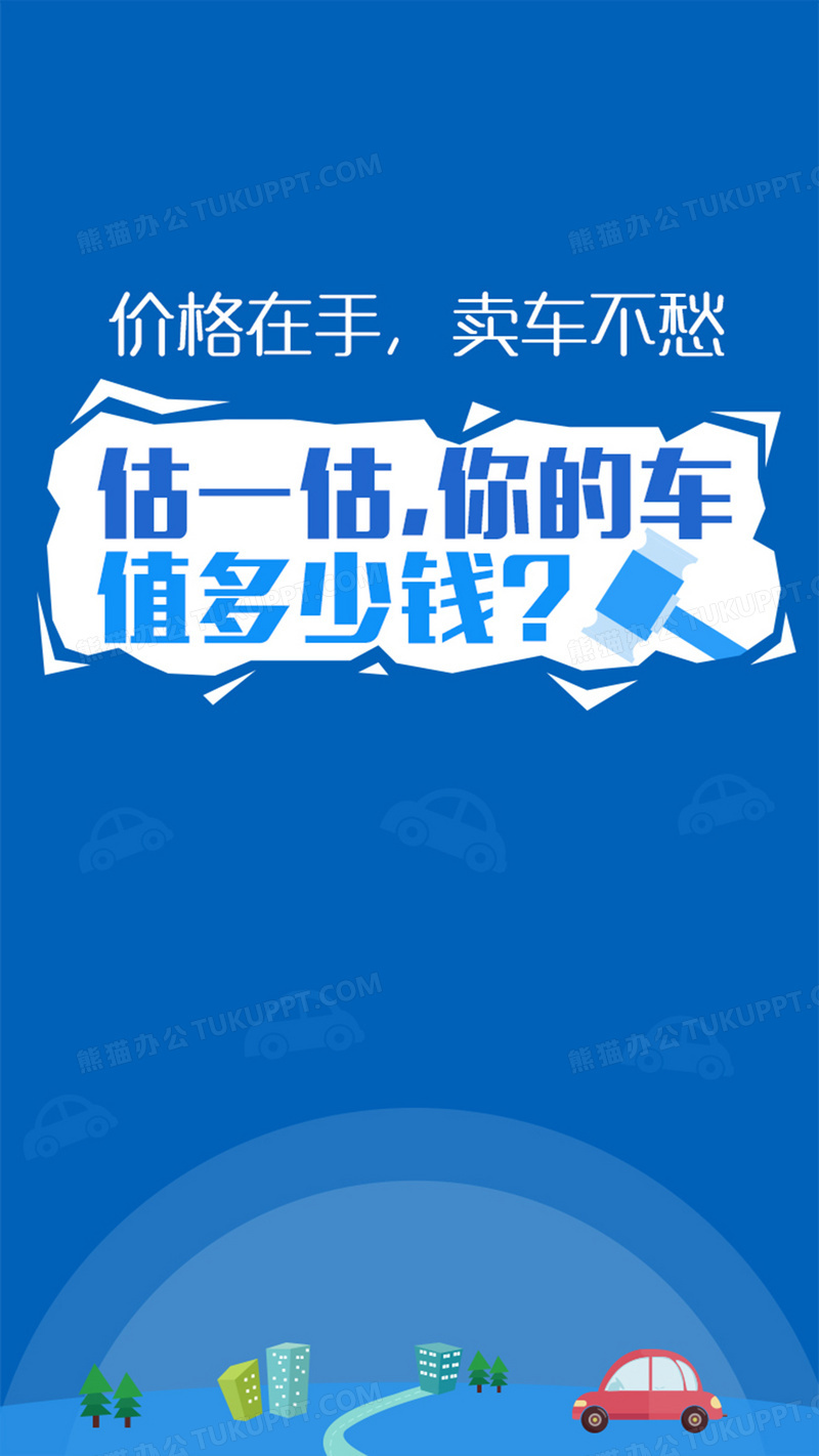 本作品内容为卖车APP蓝色简洁引导页, 格式为 jpg, 图片尺寸为1080 x 1920, 作品中背景图片无需修改, 源文件无水印,可以直接使用, 欢迎使用熊猫办公。 如认为平台内容涉嫌侵权,可通过邮件:tousu@tukuppt.com提出书面通知,我们将及时处理。