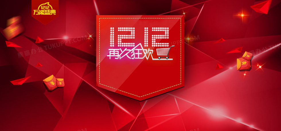 本作品内容为淘宝天猫双十二促销海报, 格式为 psd, 图片尺寸为1920 x 900, 作品中背景图片无需修改, 源文件无水印,可以直接使用, 欢迎使用熊猫办公。 如认为平台内容涉嫌侵权,可通过邮件:tousu@tukuppt.com提出书面通知,我们将及时处理。