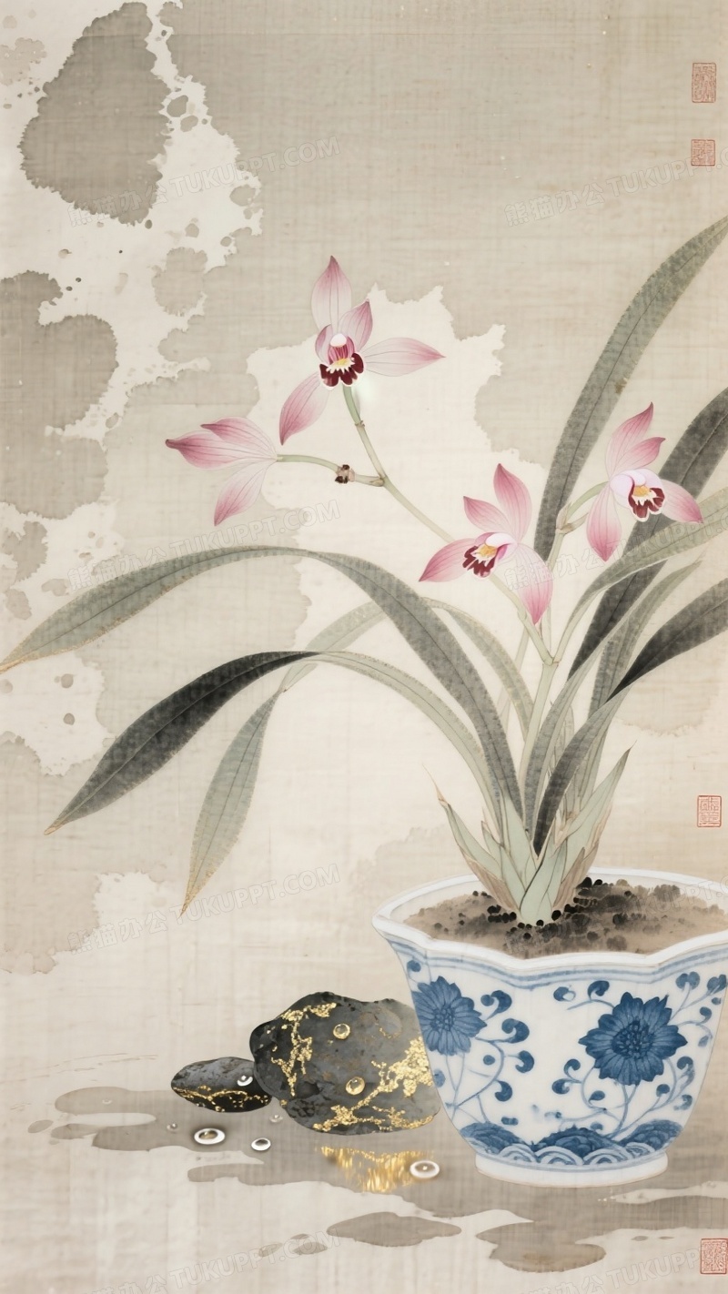 本作品内容为工笔绢本兰花图淡墨勾勒细长叶脉, 格式为 jpg, 大小1 MB, 图片尺寸为936 x 1664, 源文件无水印, 欢迎使用熊猫办公。 如认为平台内容涉嫌侵权,可通过邮件:tousu@tukuppt.com提出书面通知,我们将及时处理。