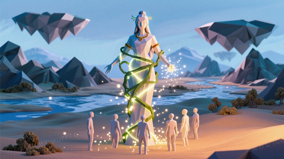 本作品内容为低多边形三维神话场景, 格式为 jpg, 大小1 MB, 图片尺寸为1664 x 936, 源文件无水印, 欢迎使用熊猫办公。 如认为平台内容涉嫌侵权,可通过邮件:tousu@tukuppt.com提出书面通知,我们将及时处理。