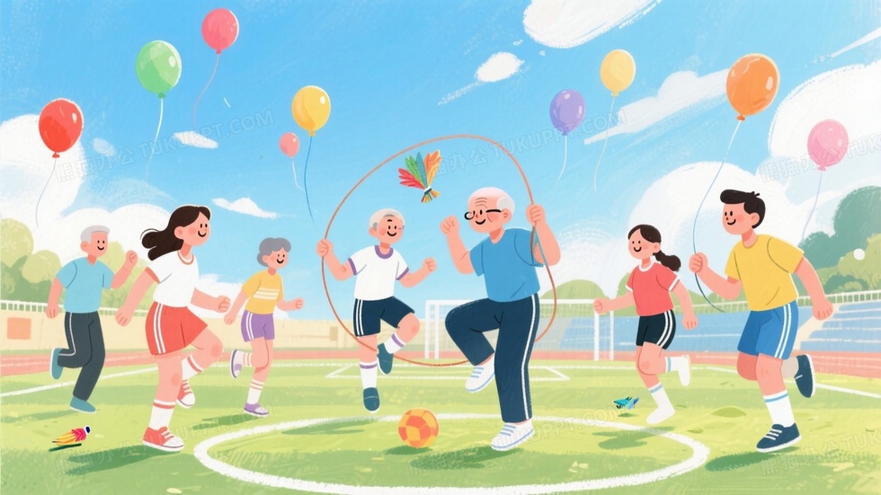 本作品内容为卡通风格公益插画一群男女老少穿着运动服在操场上跳绳, 格式为 jpg, 大小1 MB, 图片尺寸为1664 x 936, 源文件无水印, 欢迎使用熊猫办公。 如认为平台内容涉嫌侵权,可通过邮件:tousu@tukuppt.com提出书面通知,我们将及时处理。